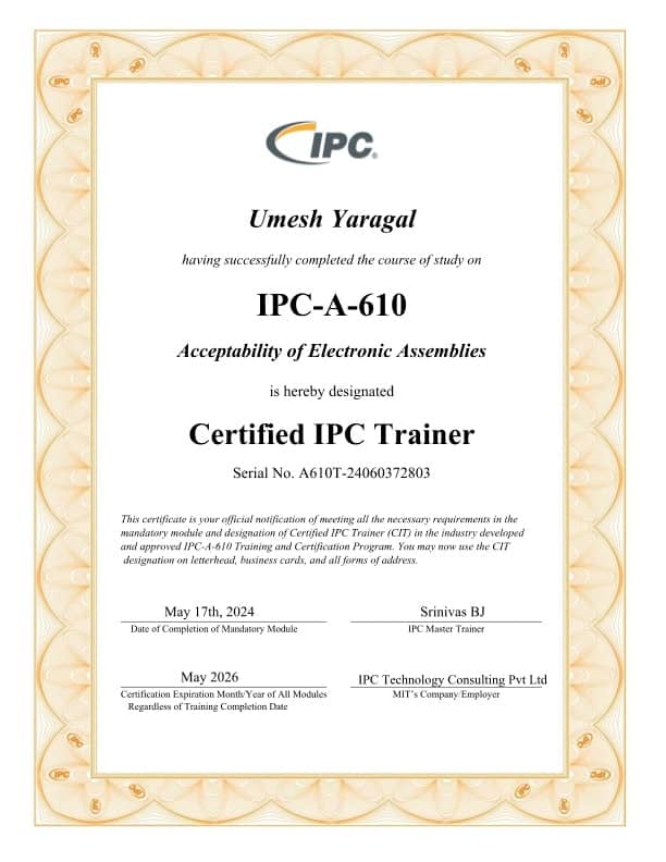 Our facility is an extension for a lot of design house to build the first boards and complete their initial testing. We have state of the art equipment for assembly, inspection and testing. We also invest in quality assurance and we have received ISO 9001:2015, ISO:13485 and AS9100D certificates. We also have. a Certified IPC Trainer and all our operators are IPC trained.